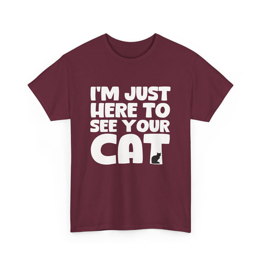 Funny Cat Lover Unisex Heavy Cotton T-Shirt 'I'm Just Here to See Your Cat'