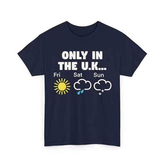 British Weather Humour Unisex T-Shirt - "Only in the U.K..."