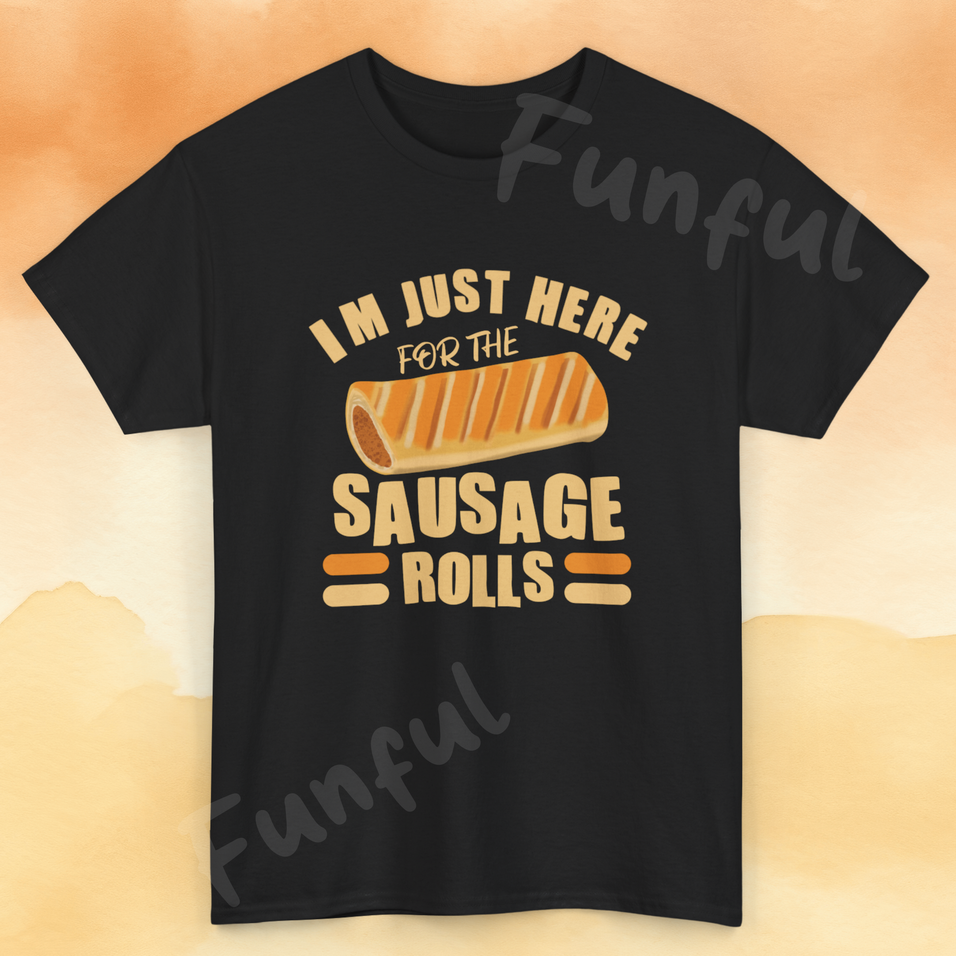 Funny Sausage Roll Lovers T-Shirt, With Quote 'I'm Just Here For The Sausage Rolls'